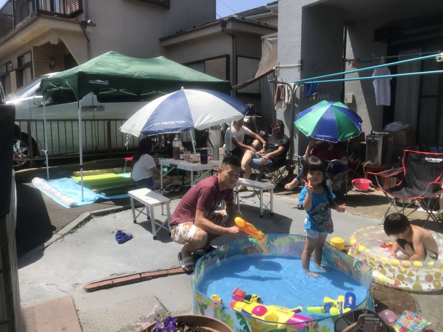 天気も良かったのでプールも出して子どもたちはプール遊び。