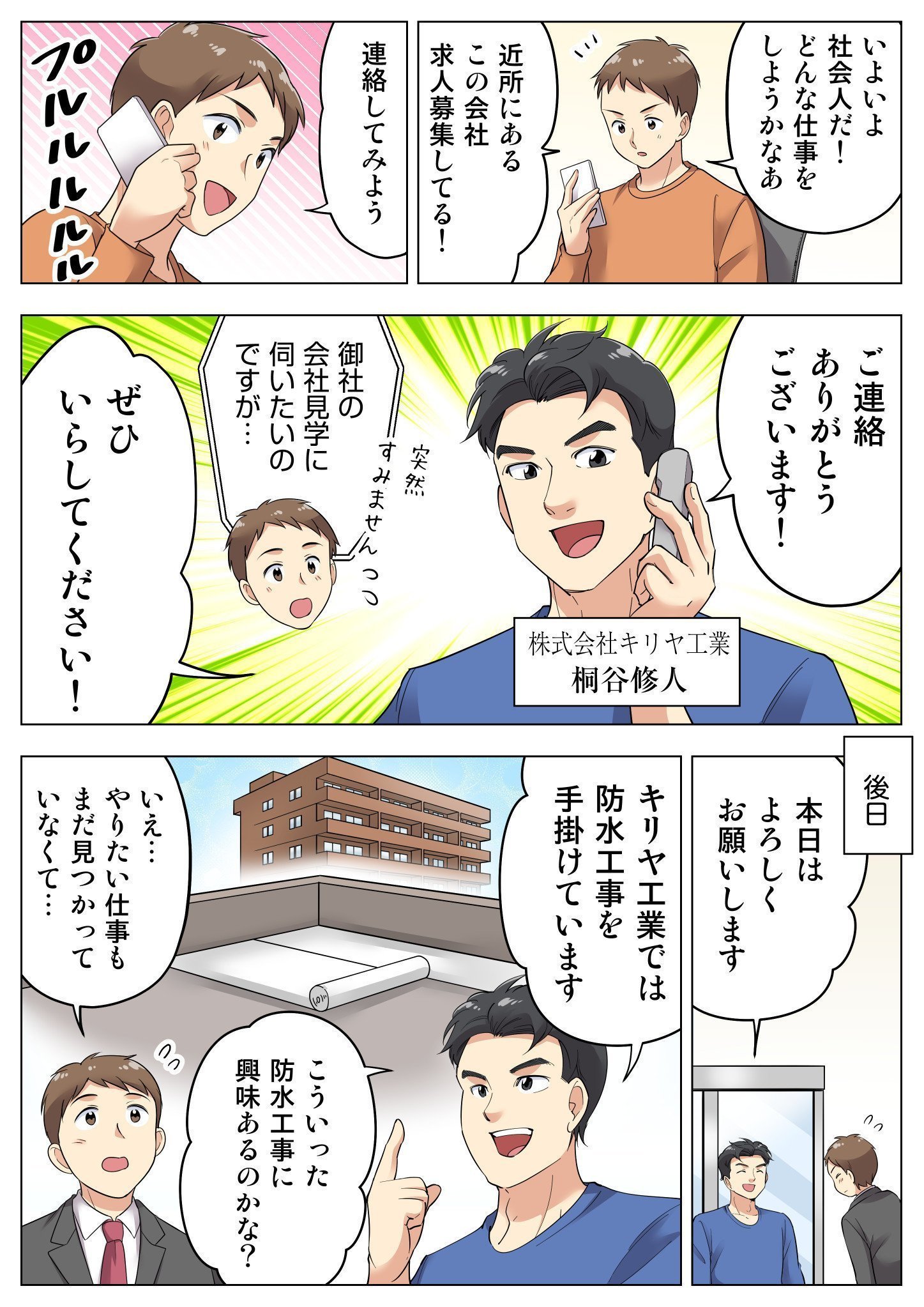 弊社は学歴を一切問わない会社です。今を一番大切だと考え、どう動いていくかが未来につながると考えています。やる気のある方、防水工事にご興味をお持ちの方、成長したいとお考えの方はぜひご応募ください。